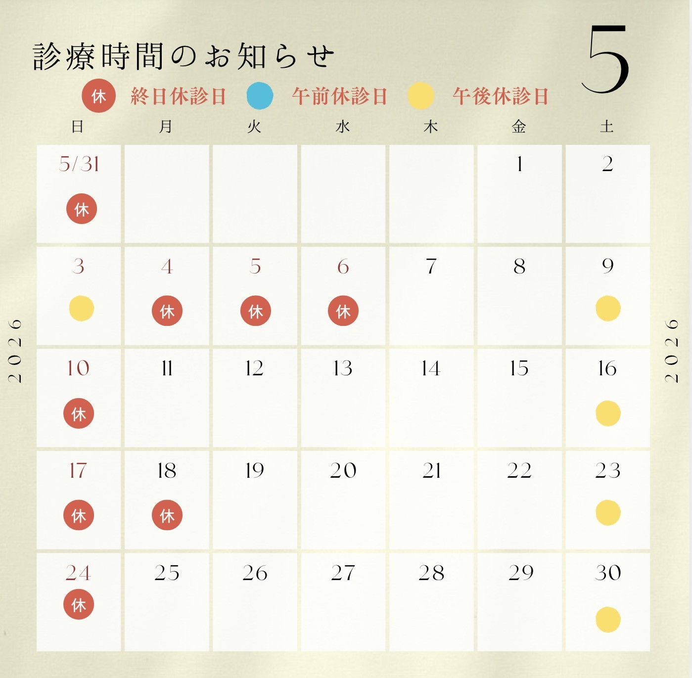 日曜日は休診 祝日は不定休